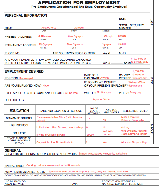 Ya’ man thank you a lot for reading this, like so much dude. Here I attached my job application so you can see it, when you see dat’ you gonna like here me right away man, lke so cool. Well, now bye, and YOLO. And remember, if Im god, everyone be getting wine and parties will be regular, so yeah, make me da' boss if ya' want parties.